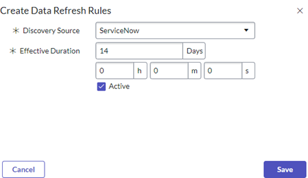 For example, let’s consider that the following data refresh rule is defined for the ‘Server’ class. As per this, a lower priority data source would be able to update the data for all Server CIs that are NOT updated in 14 days by ServiceNow discovery.