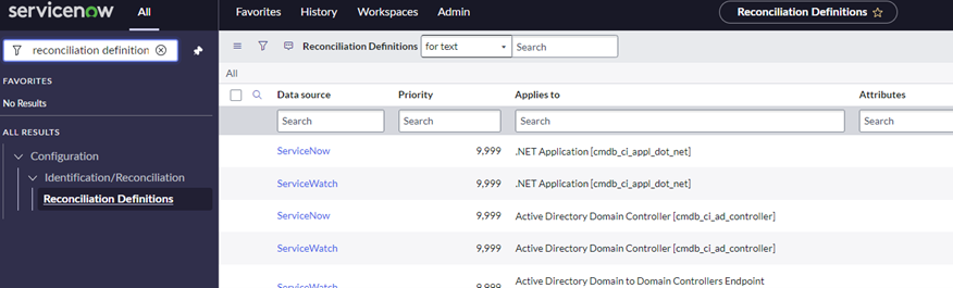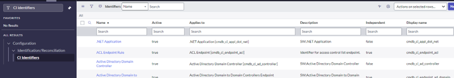 - Go to ‘Identification/Reconciliation>CI identifiers‘ from the application navigator.