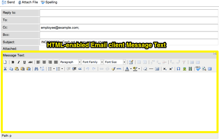 In this post, I’ll show you a technique that Valor Poland shared with me a year or so ago that changes the email client ‘Message Text’ field to an HTML-based field for this purpose.