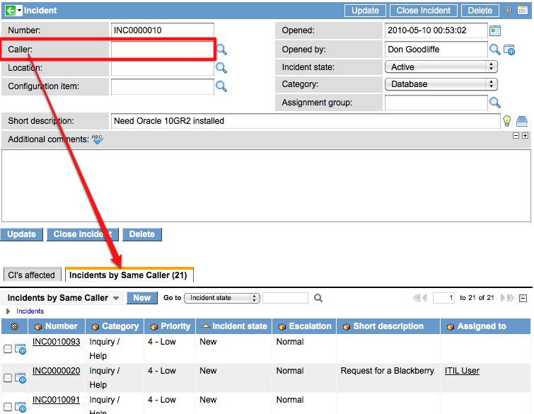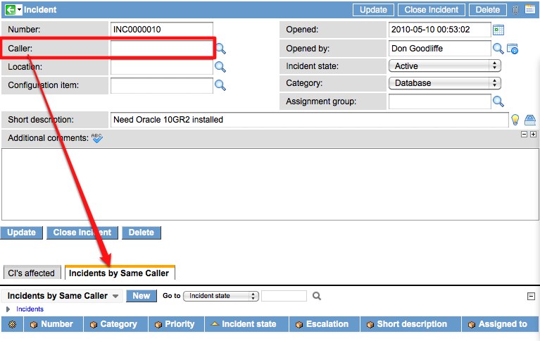 One of the familiar defined related lists is the ‘Incidents by Same Caller’ list that you can display at the bottom of your incident form. The name says it all, but it looks something like this…