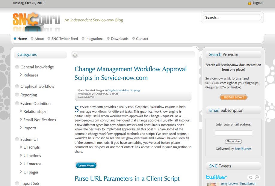 ServiceNowGuru has undergone a complete redesign over the past week or so. There are lots of reasons why I chose to go through all of the effort to give a new look to the site but mostly I was bored with the old look and thought it would be fun to do something different. Read on for more details!!!