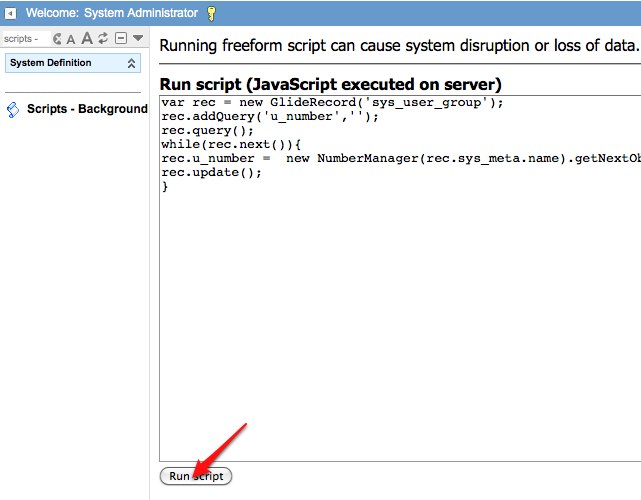 The number maintenance module allows you to manage all of the numbering for the various tables within ServiceNow. Record numbering really isn’t that difficult to deal with and its very simple to understand as long as you get it set up before the table has records in it. If you have a table with a bunch of data already and you want to assign numbers or IDs to the records in that table, then you need to run a script to assign numbers to all of the existing records along with the typical number maintenance setup. This article explains how to set this up. Thanks to Matt Gaide and Paul Murphy for the script and article idea!