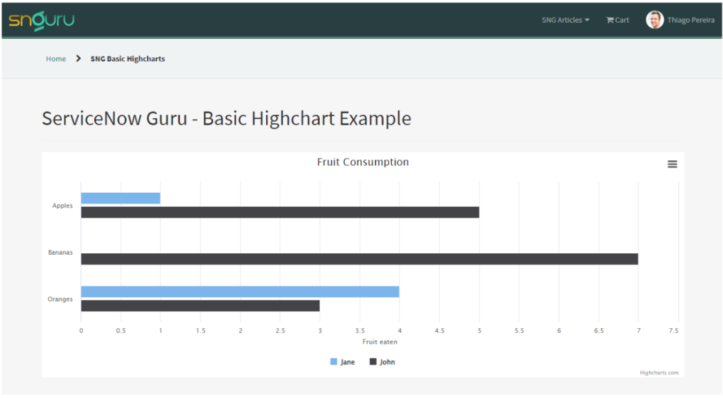 <div class="page-header"> <h1>ServiceNow Guru - Basic Highchart Example</h1> </div> <div id="container" style="width:100%; height:400px;"></div>